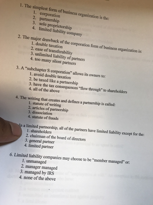Solved The Simplest Form Of Business Organization Is The Chegg Com